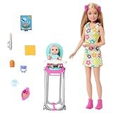 Barbie Skipper Muñeca niñera con Falda, con bebé de Juguete y Accesorios para su Cuidado (Mattel GRP11)